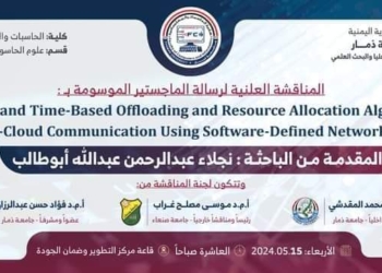 الماجستير بامتياز للباحثة نجلاء عبدالرحمن عبدالله أبو طالب من كلية الحاسبات والمعلوماتية بجامعة ذمار