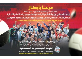 تقيم الغرفة التجارية الصناعية في أمانة العاصمة، يوم غد الأربعاء، احتفالية تكريمية كبيرة لمنتخب الناشئين لكرة القدم المتوج بطلا لغرب...