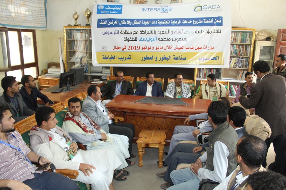 دشنت مؤسسة صدى للبناء والتنمية بالشراكة مع منظمة انترسوس العالمية الثلاثاء الماضي البرنامج التدريبي لبناء وتأهيل قدرات الأطفال ضمن مشروع خدمات الرعاية المجتمعية ذات الجودة للطفل والاطفال المعرضين للعنف .