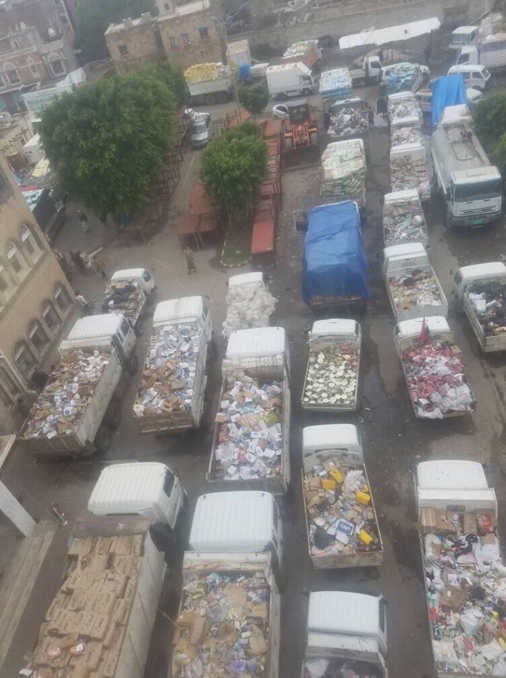 وصرح الدكتور محمد عبدالكريم الأصبحي مدير عام صحة البيئة بأمانة العاصمة ل “بيس هورايزونس” بالقول : “تم اليوم إتلاف حوالي 200 طن من المواد الغذائية المختلفة التي تم تجميعها من قبل مفتشي صحة البيئة من مديريات أمانة العاصمة وهي عبارة عن أجبان وألبان وتمور وعصائر ومشروبات غازية”.