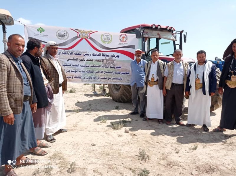 دشن اليوم بمديرية جهران بمحافظة ذمار، مشروع استصلاح الأراضي الصالبة وبداية موسم زراعة بذر الحبوب الذي تنفذه وحدة الحراثة المجتمعية بالمؤسسة العامة لإنتاج الحبوب بالتنسيق مع مكتب الزراعة بالمحافظة