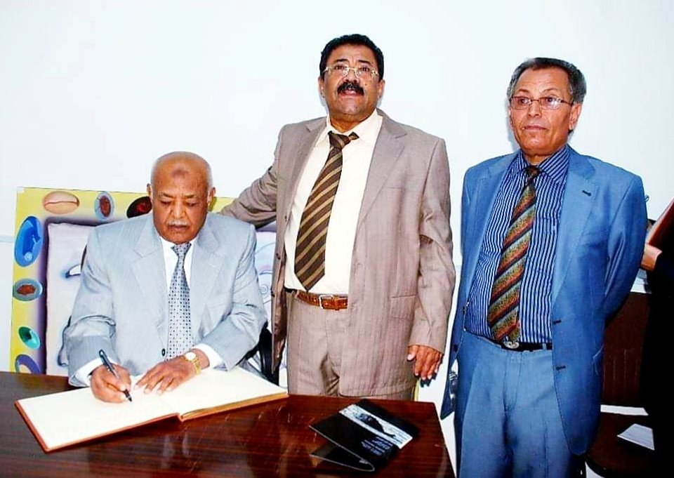 الوزراء حينها الاستاذ محمد سالم با سندوة يسجل كلمة في دفتر