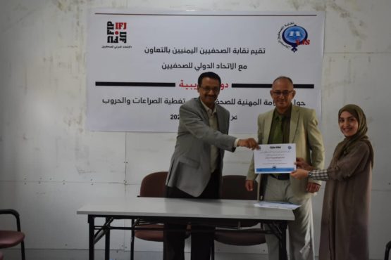 اختتمت اليوم الاثنين في مدينة تعز دورة السلامة المهنية للصحفيين أثناء تغطية الصراعات والحروب والتي نظمتها نقابة الصحفيين بالتعاون مع الاتحاد الدولي للصحفيين لمدة يومين وبمشاركة ١٣ صحفيا من فئة الشباب بينهم ٥ صحفيات.