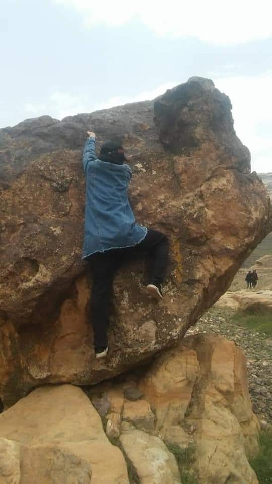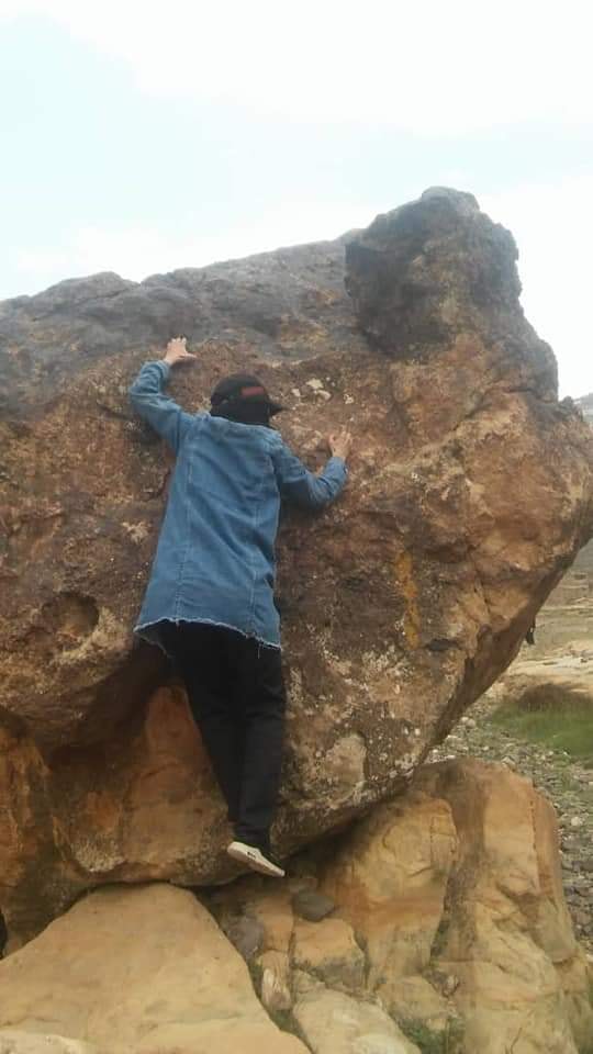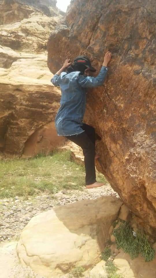 فتاة يمنية تتسلق كل الصعاب وتتمرد على كلمة مستحيل وهي تجابه صخرة عملاقة وتتسلقها بكل رشاقة ..