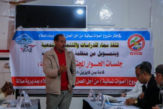 ونفذت مؤسسة سماء للدراسات والتنمية أمس جلسة حوار المجتمعي الثانية بمشاكة 25 مشاركا من أبناء مديرية صالة بدعم من منظمة أجيال بلاقات في إطار مشروع يستمر على مدى ثلاثين يوما كرس للعمل الانساني وبناء السلام وتعزيز مشاركة المرأة في المديرية.