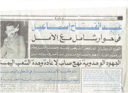 وأخيرًا، هناك كتابات تغطي مساحات واسعة من صفحات الأمل بأسماء مستعارة: أبو حسام، أبو أمل، أبو وفاء، ثم إن الزملاء، وهم مدير التحرير: علي محمد عبده الصراري، وسعيد بجاش، ونصر صالح، ومحمد عبدالرحمن الجميل – شفاه الله – هم الأقدر على الكشف عن هذه الأسماء؛ إذ لا محظور حاليًّا.