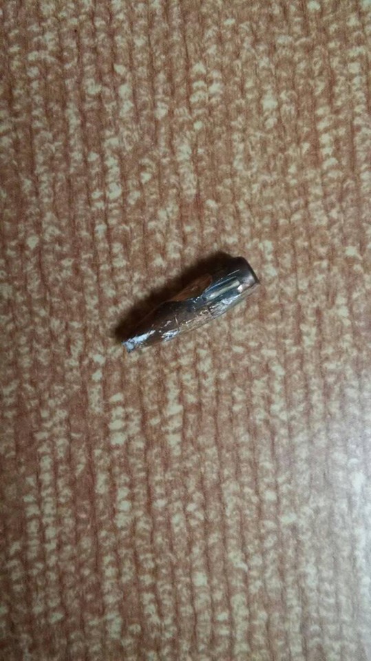 قبيل اذان فجر اليوم اخترقت زجاج نافذة نومي الرصاصة المشار إليها في الصوره …. وحطت على بعد أقل من نصف متر من سرير نومي ….
