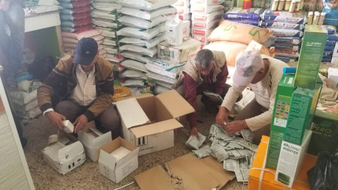 وهذا ويواصل المكتب تنفيذ حملات التفتيش الدورية والمفاجئة على محلات بيع وتداول المبيدات والأسمدة الزراعية بالمحافظة لضبط كل المخالفين واحالتهم إلى الجهات القضائية لينالوا العقوبات القانونية الرادعة.