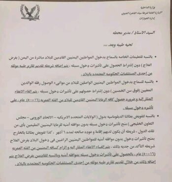 يفترض أن يتوجه إلى القاهرة الرئيس العليمي لمقابلة الرئيس السيسي أو رئيس الوزراء لمقابلة رئيس الوزراء المصري بغية استعادة التعامل مع اليمنيين على الأقل بما كانت عليه الإجراءات المتخذة قبل صدور القرار الأخير من وزارة الداخلية إدارة الجوازات بالقاهرة.