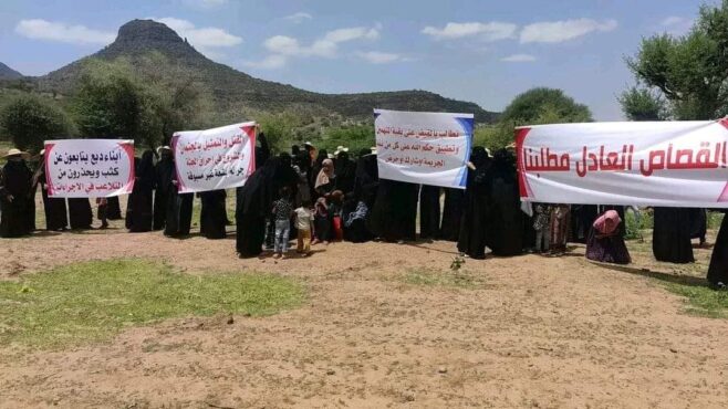 وطالب المتظاهرين بالقبض على جميع المتهمين والمشاركين والمحرضين على ارتكاب الجريمة وتقديمهم للعدالة والاقتصاص منهم، مؤكدين أن الجريمة بادره خطيرة لم تشهدها الحجرية من قبل.