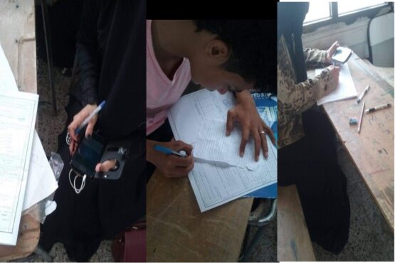 وأكد مصدر تربوي لموقع بيس هورايزونس أن المراكز الامتحانية منفلتة ويتم تسريب الاسئلة في الدقائق الأولى ويتم ادخال اجابات نموذجية للطلبة عبر وسائل التواصل الاجتماعي وميسرين لعملية الغش يتجمهروا امام المراكز بعضهم بالزي العسكري كما الحال مركز وادي عرفات في بني شيبة ومركز ابو الذهب الامتحاني في بني غازي.