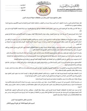 كما دعا البيان أبناء اليمن إلى الالتفاف حول وطنهم، والتمسك بوحدتهم وهويتهم الجامعة، ومصدر انتمائهم ، معتبرا أن أي مساس بالوحدة اليمنية يعد استلاب للسيادة وعبث بالحاضر والمستقبل.