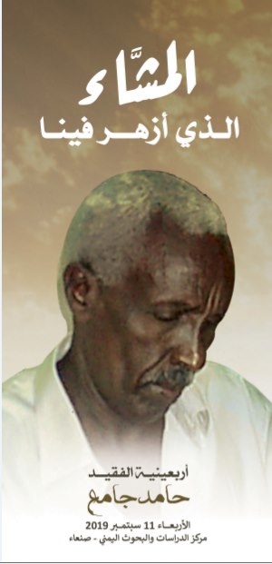 أعلن أصدقاء ومحبي الفقيد الكبير حامد جامع في صنعاء عن احياء اربعينية وفاته صباح الاربعاء القادم الموافق 11 سبتمبر 2019 في مركز الدراسات والبحوث اليمني الصغرى