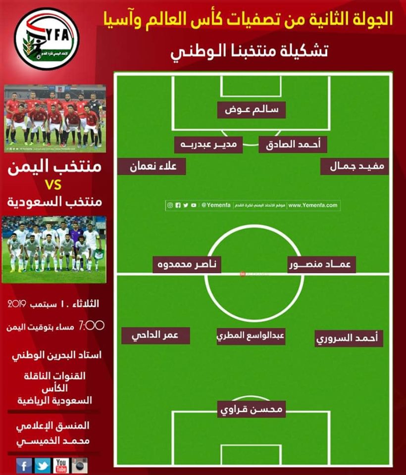 التشكيلة المختارة لمباراة المنتخب مع نظيره السعودي التي ستنطلق الساعة 7