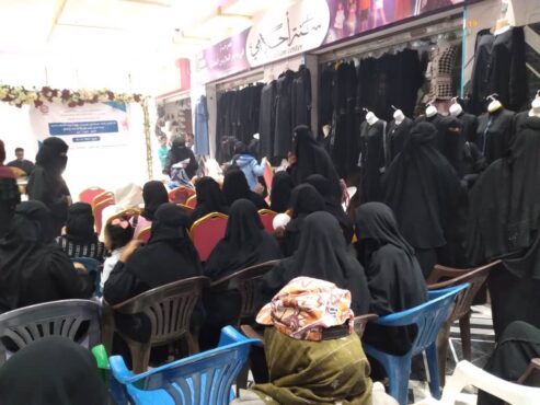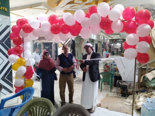 وفي البدء قام بقص شريط المعرض عن السلطة فائز النظاري مدير مكتب الاعلام وناصر الأديمي وخالد الحاج عن المجتمع وحليمة الذبحاني، وفي هذا السياق صرحت الأخت منال محمد ثابت المدير التنفيذي لجمعية الايمان، أن المعرض مخصص لإنتاج خياطة الملابس وخاصة العبايات وتوابعها وأن هذه الفعالية هي نوعية لانتشال حالات الفقر والبطالة بين النساء المعيلات لأسر تضررت جراء الحرب الدائرة في البلاد.