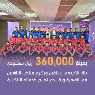 استقبل بنك الكريمي للتمويل الأصغر الإسلامي في محافظة المهرة، بعثة منتخب الناشئين، لاعبين وجهاز فني واداري، وأقام فعالية تكريمية احتفالاً به، ودعماً وتشجيعاً لإنجازه الذي حمل السعادة والفرح للجميع.
