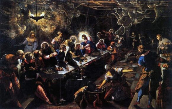 ورغم تفوق الفن الفينيسي عن نظيره الفلورانسي، سنجد موضوع العشاء الأخير عند فنان فينيسي هو تنتوريتو، والذي ولد بعد رحيل دافنشي بثمان سنوات، سنجده مهووس برموز وايحاءات، وتفاصيل عديدة.