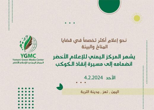 نحو إعلام يمني أكثر تخصصاً بقضايا المناخ والبيئة؛ أشهر اليوم الأحد 4 فبراير في مدينة التربة جنوبي تعز المركز اليمني للإعلام الأخضر، ليسهم بدوره في خلق مساحات أوسع لتفاعل الجمهور مع قضايا المناخ والبيئة في الإعلام اليمني والعربي.