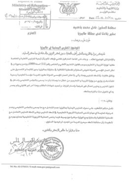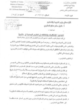 هذا ورفعت مذكرة غطائية على المذكرة السابقة من وزير التربية والتعليم الأستاذ طارق سالم العكبري إلى دولة رئيس الوزراء الدكتور أحمد عوض بن مبارك بتاريخ 25ديسمبر2019م تتضمن الأشكالات والمخالفات حول تعامل السفارة اليمنية في ماليزيا ممثلة بالسفير عادل باحميد مع المدارس اليمنية في ماليزيا وإلزامه للمدارس بالتعامل مع المجلس التعليمي غير الشرعي والمنشأ من قبله شخصيًا دون أي قرار وزاري، بالرغم من أن الوزارة أصدرت مذكرة بعدم شرعيته. كما طالب وزير التربية والتعليم بمخاطبة السفارة بالرد على الإشكالات والمخالفات المذكورة.. التي لاتزال السفارة اليمنية في ماليزيا تتهرب من الرد عليها.