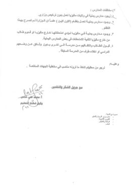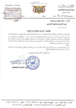 وأوضحت مذكرة مرفوعة من وكيل قطاع التعليم الأستاذ محمد علي لملس إلى وزير التربية والتعليم الأستاذ طارق سالم العكبري في تاريخ 19 نوفمبر 2023م، تتضمن جملة من المخالفات التي تمارس في ظل رعاية وشرعنة من قبل السفارة اليمنية في ماليزيا.. حيث تم استحداث كيان جديد برعاية السفارة سمي المجلس التعليمي وتم تعيين رئيسًا له شخص محسوب على جماعة السفير عادل باحميد للسيطرة على المدارس وتقاسم الأرباح مع مالكي المدارس، وعدم التعامل مع المدارس التي لاتدفع النسبة التي يضعها السفير لمنح المستثمرين التسهيلات ولتطويع المدارس لإيدلوجية السفير وجماعته في المناهج والأنشطه الطلابية والرحلات.