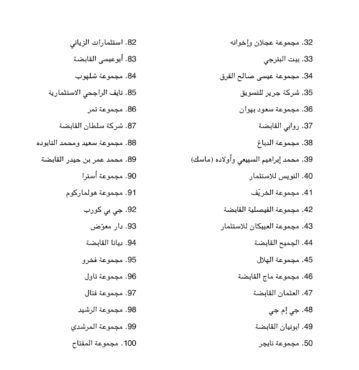 واعتمدت فوربس الشرق الأوسط في ترتيب وتصنيف تلك الشركات العريقة التي تملكها أو تديرها عائلات عربية. على حجم الاستثمارات، وقيمة الأعمال، والأداء التجاري خلال العام الماضي، ومدى تنوع الأعمال من حيث القطاعات والامتداد الجغرافي.