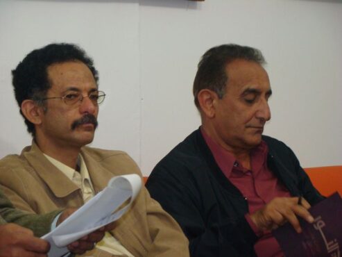 الصديقان الكبيرأن الدكتور حاتم الصكر ( الناقد العربي المعروف) والروائي علي المقري 2010، في فعالية في مرسم (كون ) بضيافة الفنانة التشكيلية والأكاديمية دكتورة آمنة النصيري احتفاء بصدور كتاب (أقوال النور-قراءات بصرية في التشكيل المعاصر) للدكتور حاتم ويظهر الكتاب بين يديه..