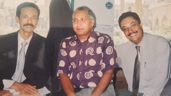 في بيت الثقافة بصنعاء ( في الغالب 2004) برفقة الصديقين الروائيين حبيب عبد الرب سروري وعلي المقري .. الأول يقيم في فرنسا منذ قرابة نصف قرن ( ذهب إليها طالبا في 1976) وصار واحدا من علمائنا المعروفين والثاني انتقل إليها لاجئا في سنة الحرب الثانية فعرفته مبدعا مميزا ومنحته وساما ادبيا رفيعا على مجمل اسهاماته الثقافية والأدبية.