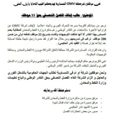 وأشار الموظفون إلى أن الشركة النمساوية تصر على المضي في قرار الاستغناء عنهم، متجاهلة اتفاقية الشراكة في الإنتاج مع وزارة النفط اليمنية، وكل المطالبات الموجهة إليها بوقف تعسفاتها بحق الكادر اليمني، والتراجع عن تلك القرارات، التي كانت سببًا في خسارة زميلهم نادر الحكيمي، الذي وافته المنية جراء أزمة قلبية مفاجئة، وذلك فور إبلاغه بقرار فصله من الشركة_ بحسب رسالتهم.