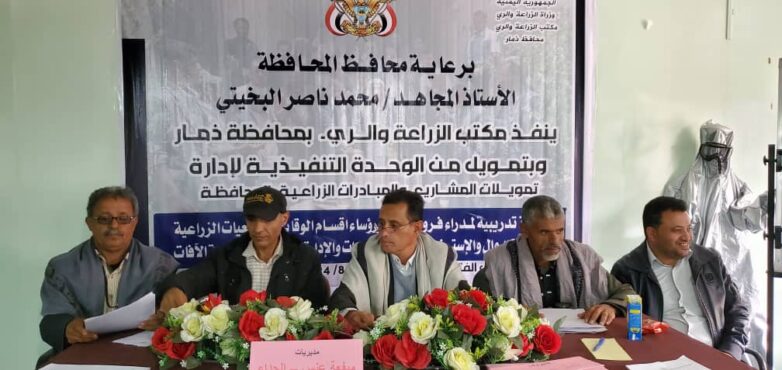 وتهدف هذه الدورة التي ينفذها مكتب الزراعة بذمار ضمن سلسلة من الدورات التدريبية، إلى بناء قدرات 36 مشاركًا من مدراء فروع مكتب الزراعة والري بالمديريات ومختصي الوقاية بالفروع والجمعيات الزراعية وفرسان التنمية، حول آليات التداول والاستخدام الآمن للمبيدات والإدارة المتكاملة لمكافحة الآفات النباتية وأضرار الاستخدام العشوائي للمبيدات على الإنسان والكائنات الحية.