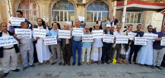 نفذ سياسيون وممثلين عن نقابات محلية في محافظة تعز، الثلاثاء، وقفة احتجاجية تنديدا بتدهور الريال اليمني وانقطاع المرتبات، وذكرت مصادر محلية أن “ممثلي المكونات السياسية والنقابات احتشدوا في شارع جمال وسط المدينة”.