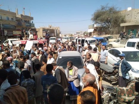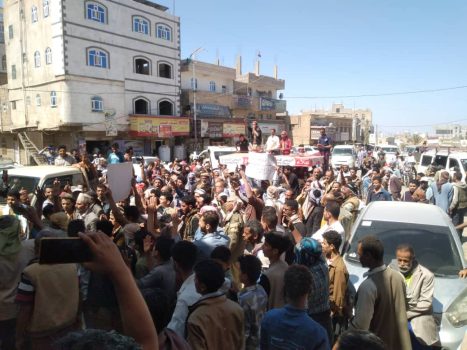نظم اليوم أبناء عزلة المشارقة وتجار مدينة التربة التابعة لمحافظة تعز مظاهرة حاشدة تضامنًا مع التاجر جلال المشرقي جابت شوارع المدينة، منددة باستمرار تعسفات السلطة المحلية في حق المشرقي وأرباب المحال التجارية الاخرى في المديرية، واستمرار الانتهاكات لحقوق الإنسان والاعتداء على التجار، وإهدار كرامتهم ونهب أموالهم وحرمانهم من أبسط حقوق الحماية، وسط صمت المجتمع وكأن الظلم، والظلام منزل من السماء على رقاب الناس حسب قول أحدهم.