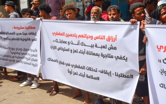 شهدت محافظة تعز، صباح اليوم الاحد ، وقفة احتجاجية نفذها بائعو الأسماك والصيادون، تنديدًا بقرار نقل سوق حراج الأسماك من موقعه في منطقة زيد الموشكي إلى موقع جديد داخل المسلخ المركزي بمنطقة الضباب، والذي وصفه المشاركون بأنه “غير مؤهل وموبوء”، ويقع خارج المدينة، بعيداً عن السكان ومراكز البيع، ما يشكل تهديداً مباشراً لمصدر رزقهم.