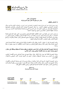 تابعت مجموعة هائل سعيد أنعم وشركاه باهتمام الانخفاضات المفاجئة في أسعار الصرف، والمطالبات المشروعة في وسائل التواصل الاجتماعي بتخفيض الأسعار. وإذ تؤكد المجموعة انحيازها الدائم للمواطن والتزامها بمسؤوليتها المجتمعية، فإنها تحذر من خطورة الإجراءات غير المدروسة التي يتم اتخاذها لمعالجة قضايا الأسعار دون وجود ضمانات حقيقية لاستقرار العملة ودون تنسيق مع الجهات المعنية.
