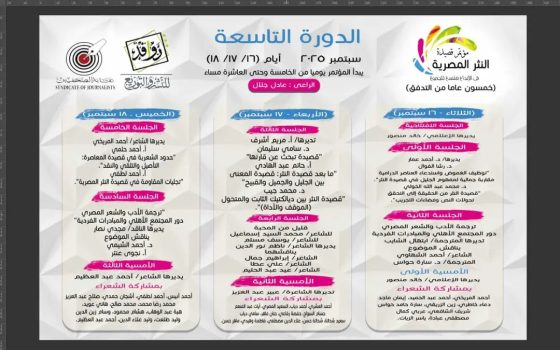على مدار ثلاثة أيام متتالية تبدأ من يوم الثلاثاء الموافق 16 سبتمبر، تستضيف نقابة الصحفيين المصرية فعاليات الدورة التاسعة من “مؤتمر قصيدة النثر المصرية”. يُعقد المؤتمر في قاعة محمد حسنين هيكل، حيث تنطلق الأنشطة يوميًا في تمام الساعة الخامسة مساءً. وتحتفي هذه الدورة بشكل خاص بالتجربة الشعرية والنقدية للشاعرين الراحلين الدكتور محمد السيد إسماعيل ويوسف مسلم. كما يسلط المؤتمر الضوء على قضية محورية تتمثل في “ترجمة الأدب والشعر المصري”، مخصصًا جلستين لمناقشة دور المبادرات الأهلية والفردية في هذا المجال. وتتزامن فعاليات المؤتمر مع إطلاق الجزء السابع من أنطولوجيا “ينابيع تصنع نهراً”، الذي يصدر بالتعاون مع دار روافد للنشر.