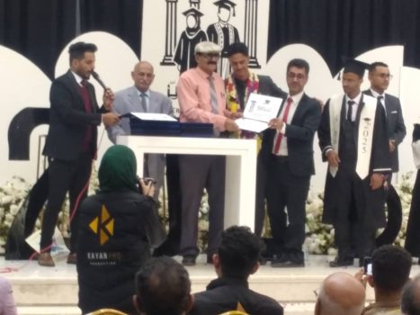 ونقل النجاشي في كلمته تحيات رئاسة الجامعة ممثلة بالبروفيسور محمد الشعيبي ونائبه الدكتور أحمد غالب الرباصي، مشيدًا بدور هيئة التدريس والعاملين وكل من ساهم في إنجاح العملية التعليمية رغم التحديات الاقتصادية والسياسية التي تمر بها البلاد.