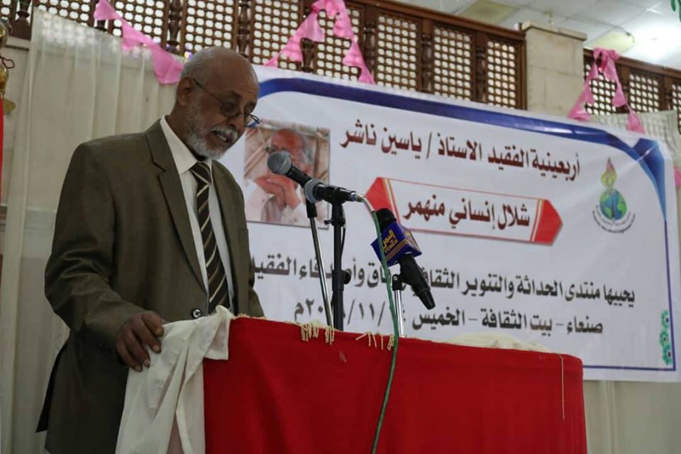 أحيا منتدى الحداثة والتنوير الثقافي صباح الخميس على رواق بيت الثقافة بصنعاء أربعينية الفقيد الأستاذ ياسين ناشر.