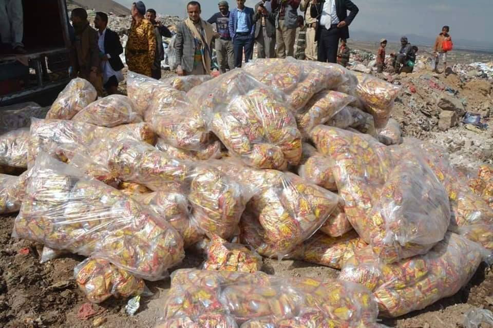 تم اليوم بصنعاء إتلاف كمية من منتفخات الذرة “بفك” ماركة حار نار.