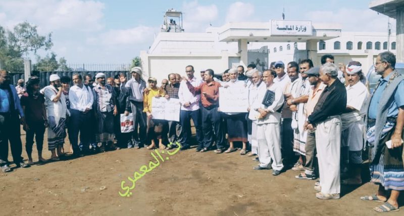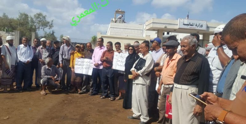 نفذ العشرات من الموظفين النازحين إلى العاصمة المؤقتة عدن يومنا هذا الأحد وقفة إحتجاجية حاشدة أمام وزارة المالية بمديرية خور مكسر في العاصمة عدن.