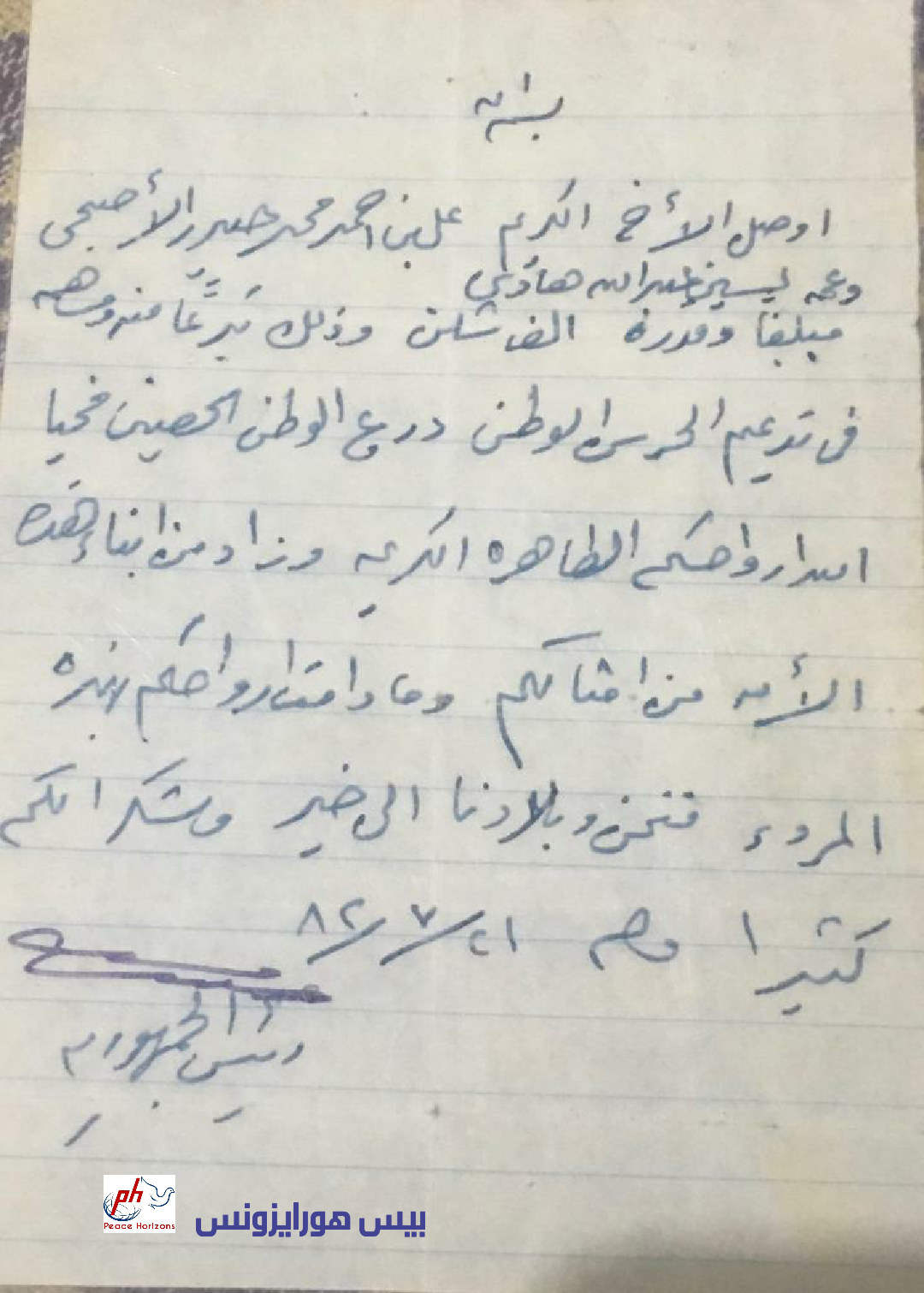 وثيقة تاريخية تنشر لأول مرة بخط وإمضاء الرئيس السلال:
