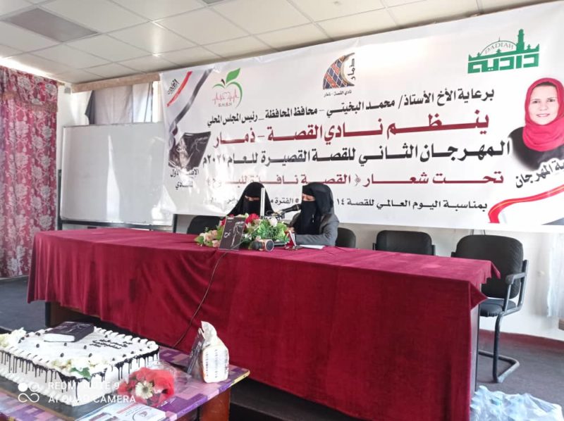 حيث افتتحت الكاتبة والأديبة نبيهة محضور رئيس نادي القصة ذمار واللجنة المنظمة للمهرحان برنامج اليوم الثاني للمهرجان ،بكلمة جددت فيها الترحيب بكافة الحضور والمشاركين في البرنامج الذي توزع بين القراءات النقدية والقصصية بالإضافة إلى حفل توقيع الإصدار الأول للنادي تحت عنوان “بوح” ، الذي أحتضن بين دفتيه مجموعة من القصص البكر لعدد من الأصوات القصصية الواعدة ،مهنئة ومؤكدة بأن هذا الكتاب الباكورة الصادر عن النادي ،بالتزامن مع الدورة الثانية لمهرحان القصة القصيرة وبمناسبة اليوم العالمي للقصة ،يعد فاتحة لسلسلة إصدارات قادمة ،داعية رجال المال والأعمال والتجار للمساهمة في دعم وتمويل الأعمال الأدبية بما يساعد على الارتقاء بالمشهد الثقافي والأدبي الذماري واليمني.