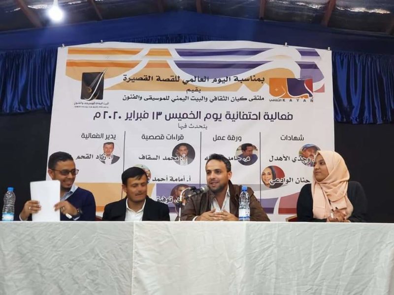 بمناسبة اليوم العالمي للقصة والذي يصادف 14 فبراير من كل عام نظمت البيت اليمني للموسيقى والفنون وملتقى كيان الثقافي بصنعاء مساء الخميس 13 فبراير أمسية ثقافية بمشاركة عدد من الأدباء والكتاب والمهتمين بالشأن الثقافي .